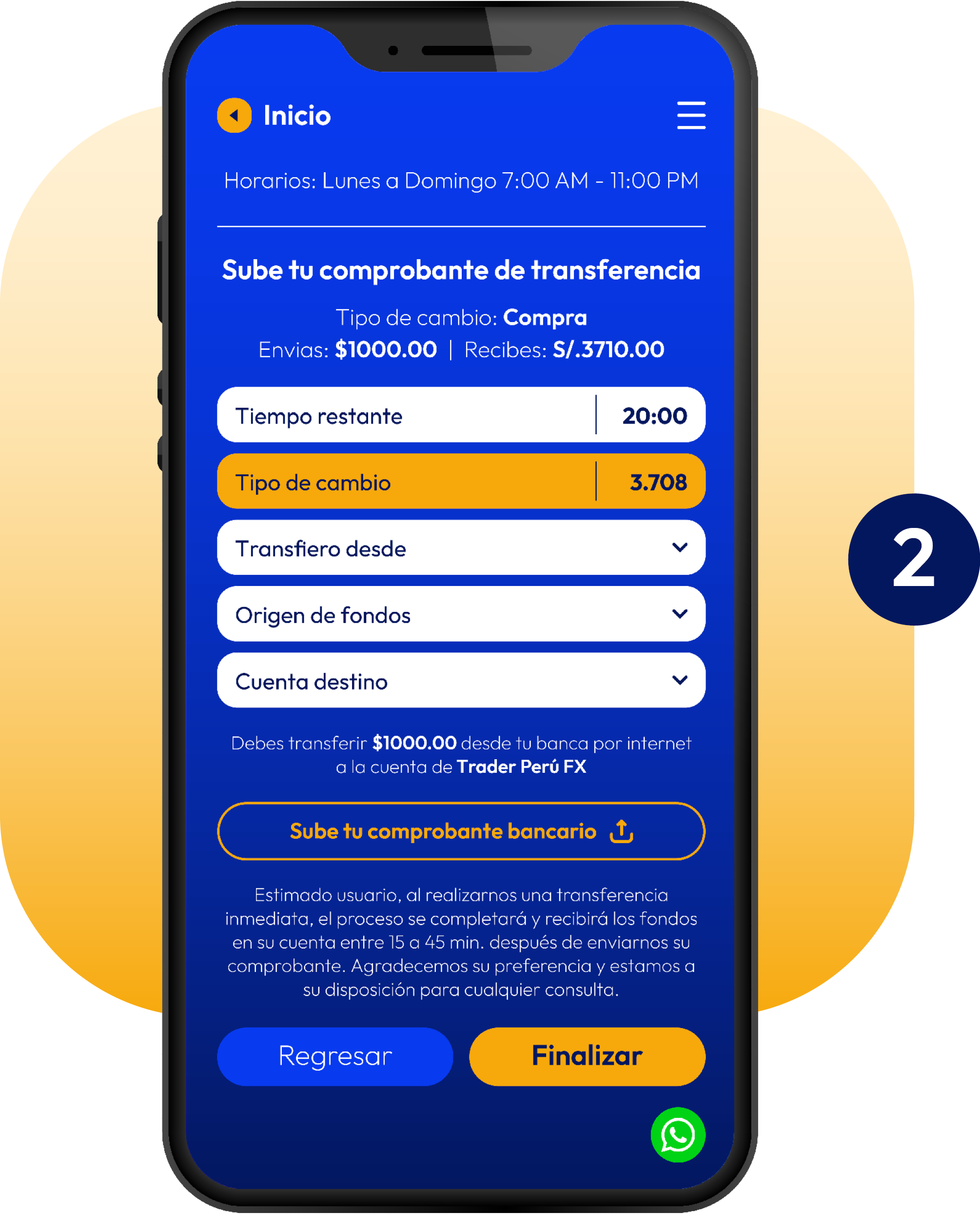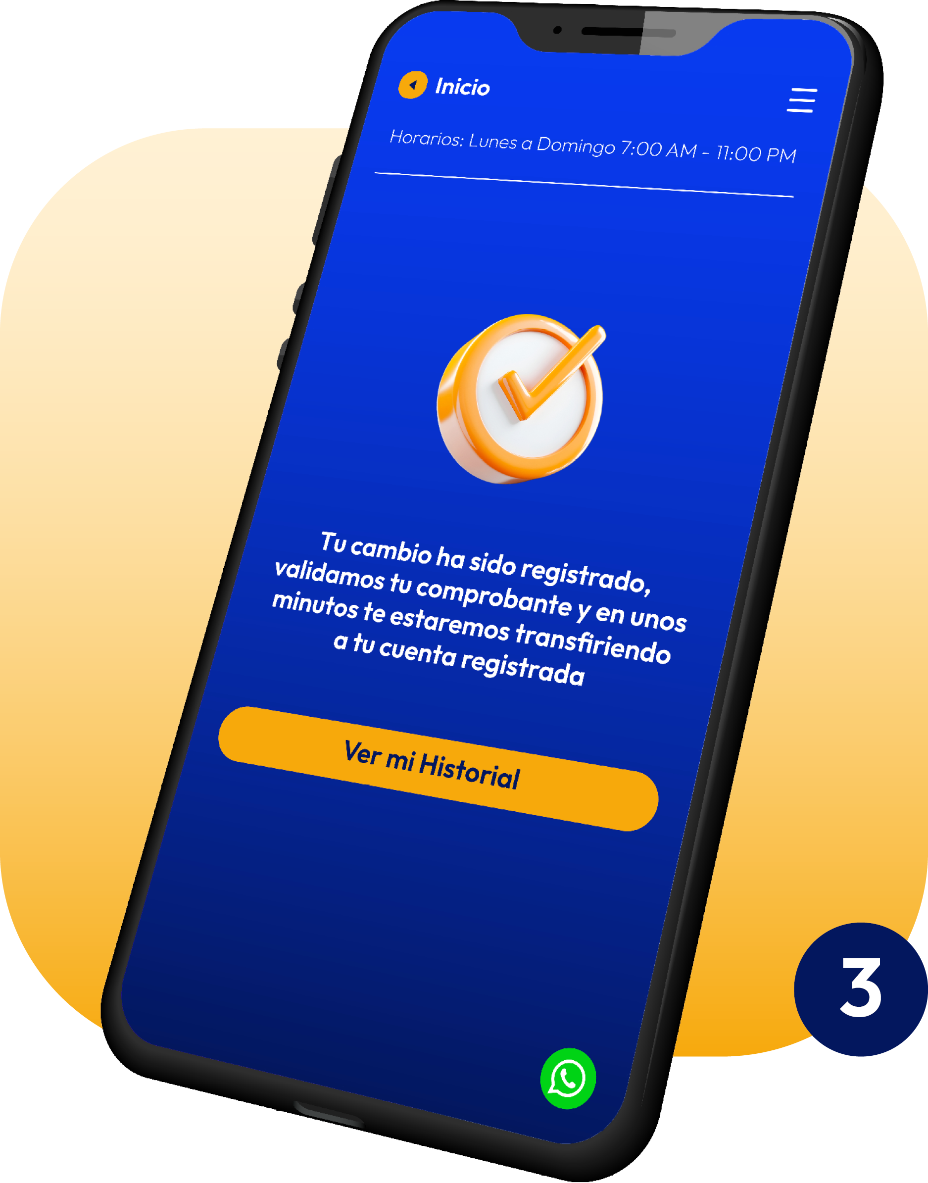 Verifica tu operación de acuerdo a tus instrucciones y recibe el dinero en tu cuenta.
